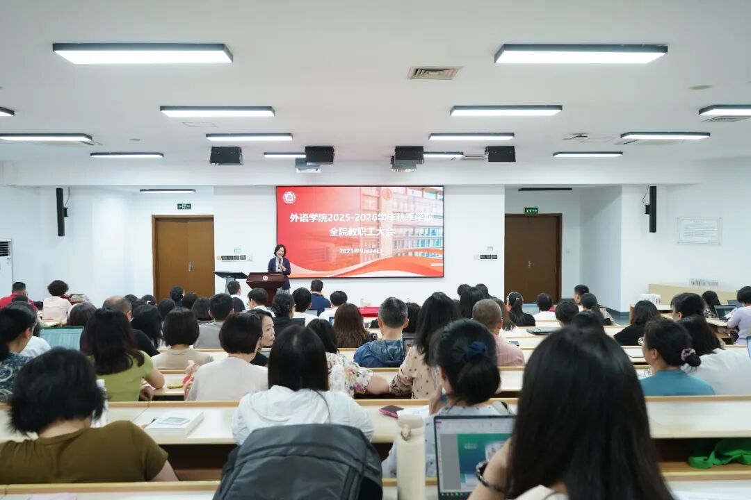 2025年9月24日,ob体育 召开2025-2026学年秋季学期全院教职工大会。大会特邀原华东师范大学外语系主任黄源深教授、人文与社会科学研究院院长吕志峰教授开展主题讲座,全体教职工参加。