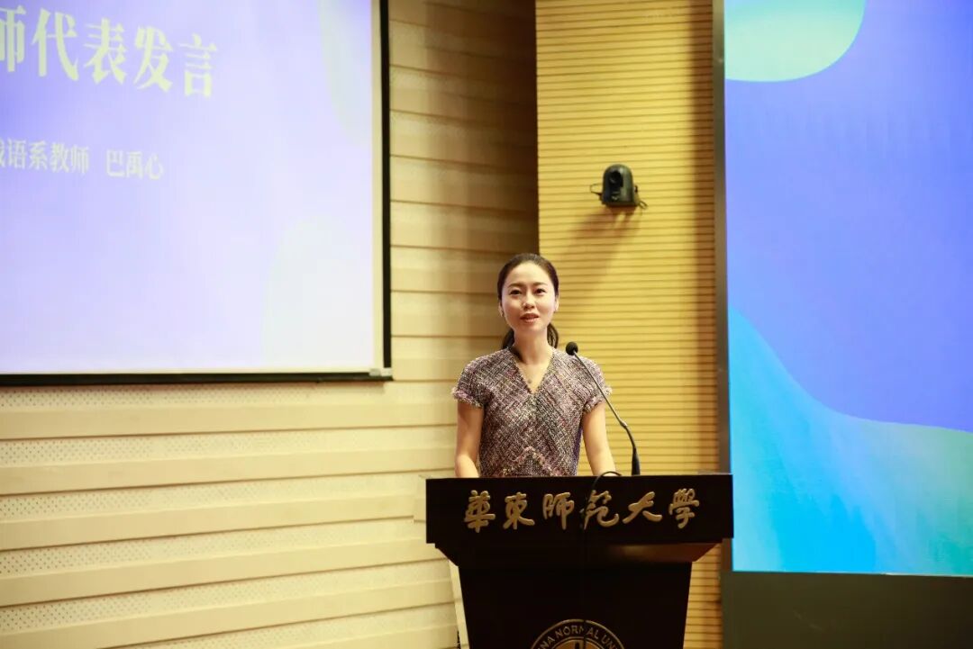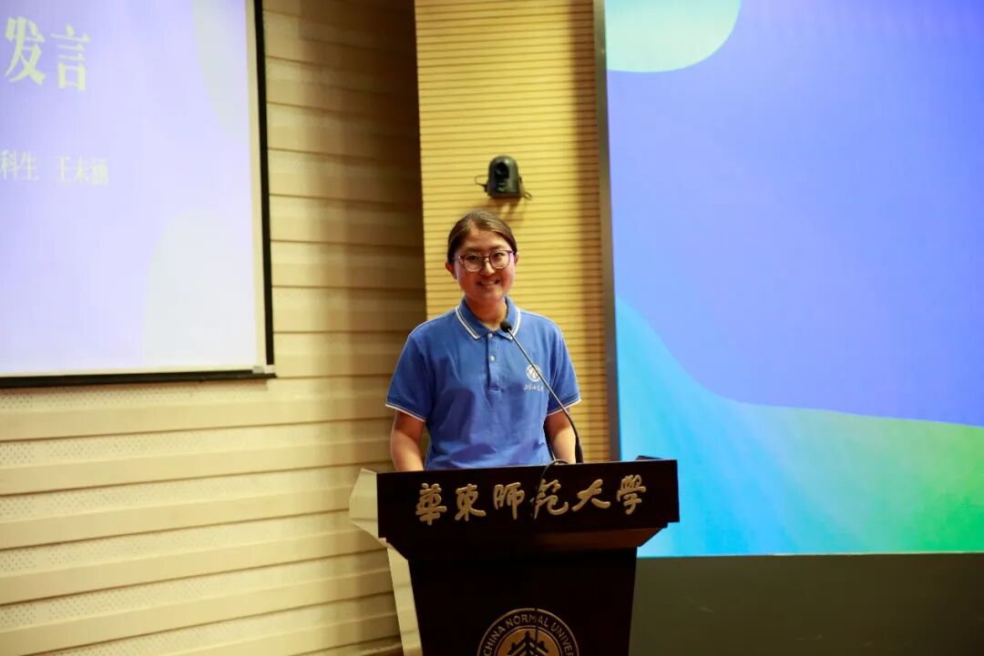 新生代表、英语师范专业本科生王未涵分享了从甘肃教师家庭走向华东师大的成长经历与教育梦想。在她看来,孟宪承书院与ob体育 “破界协同”的联合培养模式已然为师范生搭建起跨学科成长的广阔平台。她号召师范生们以外语为眼,以技术为翼,以讲台为根,厚植教育情怀,承担新时代赋予师范生的使命,共同奏响时代的教育乐章。