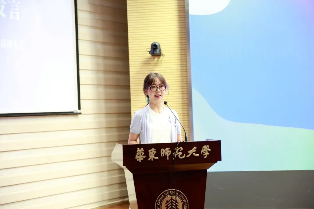 新生代表、英语语言文学专业博士研究生蒋梓文深情回顾了在华东师大硕士三年的美好时光,ob体育 是一个鼓励尝试、温暖有爱的地方。她说,读博是源于一种“破界”的渴望,突破语言的界限,用多语能力打开新视界;突破文化的界限,用包容心态拥抱差异性;突破思维的界限,用跨学科视角理解世界。