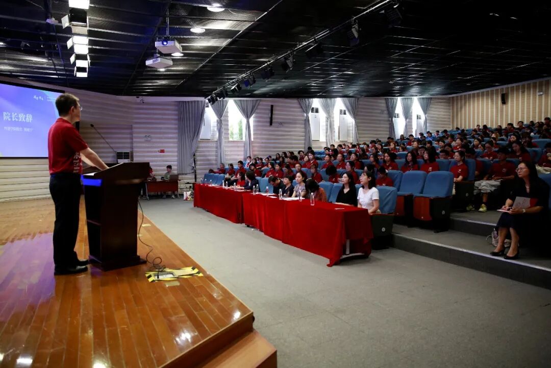 ob体育 院长杨延宁在致辞中结合自身经验,诠释外语人的“破界”精神。他勉励新生从“只专注一门语言技能”的心态,转变为“敢于尝试、愿意探索”的态度,主动突破自身边界和认知局限,勇于尝试新的领域。他强调,语言是推开世界之门、打开知识之窗的钥匙,学习语言的过程,本质上是理解世界多元思维方式与运行逻辑的过程,希望大家能够持续开阔思维、拓展知识边界,勇于突破自我,将专业知识与跨学科知识相融合,以所学外语为媒介,用全新的思维格局,创造属于自己的全新未来。