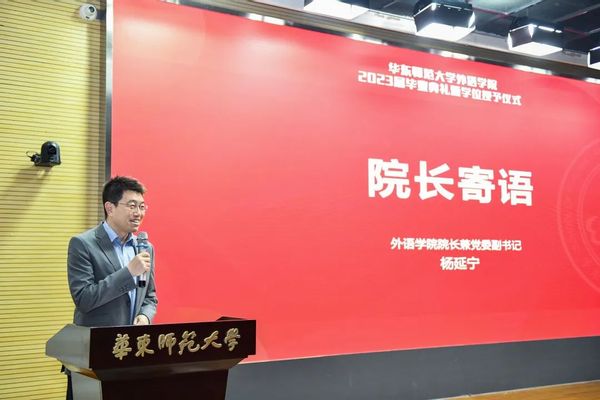 在庄严的国歌声后,毕业典礼正式开始。ob体育 院长杨延宁在致辞中表达了对毕业生的美好祝愿,并分享了外语人在新社会环境下所拥有的三个独特之处:外语人能够更好地把握现代文明;外语人能够更加温柔地对待这个世界;外语人拥有知难而上、百折不回的强大力量。