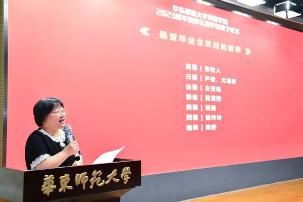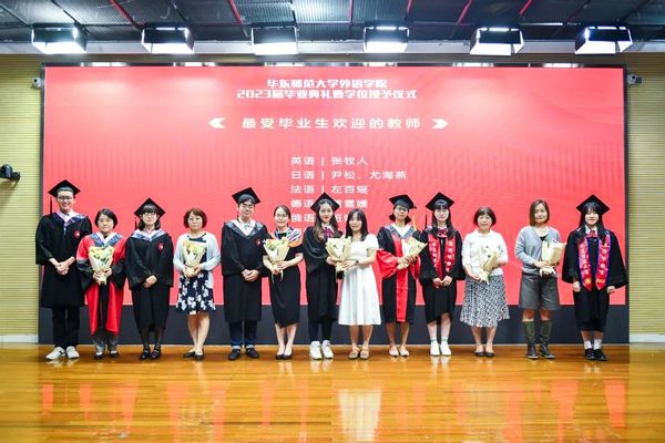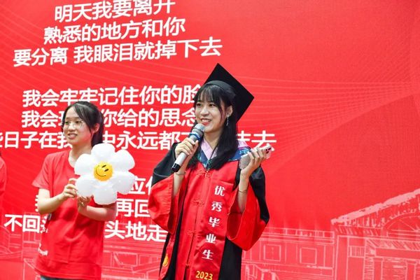 ob体育 副院长王静宣读了ob体育 “最受毕业生欢迎的教师”名单,毕业生们代表为老师送上鲜花。2023年,张牧人、尹松、尤海燕、左白瑶、黄雪媛、班婕、徐玲玲、陈舒这8位老师获此殊荣。到场的老师发表感言并送上祝福,分享了与同学们四年朝夕相处中的动人细节,祝福毕业生们前程似锦,未来可期。