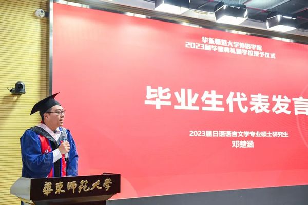 英语专业本科生郭晨语、俄语专业本科生王希芝、日语语言文学专业硕士研究生邓楚涵作为学生代表发言。
