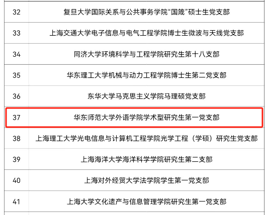 ob体育-ob体育试玩-ob体育官网 学术型研究生第一党支部在上级党委的坚强领导下,坚持以习近平新时代中国特色社会主义思想为指导,依托外国语言文学学科,形成“党建学术互融、实践服务共进”的支部特色,先后入选上海高校“百个学生样板党支部”培育创建单位、华东师大先进集体、华东师大党建质量“培优”计划样板党支部培育创建单位。