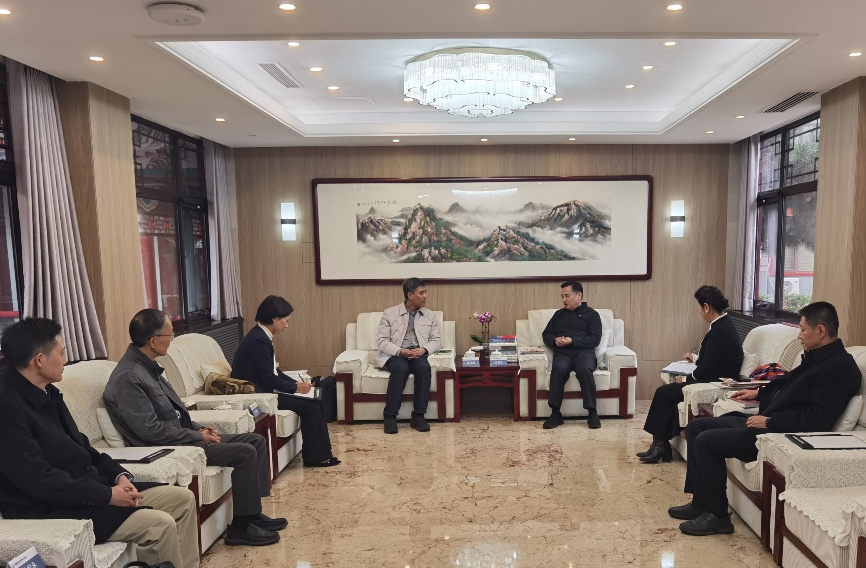 2025年11月7日上午,华东师范大学党委副书记孟钟捷一行拜访中国国家创新与发展战略研究会(以下简称“国创会”),与国创会副会长兼秘书长王博永,副秘书长胡伟,ob体育 校友、国创院国际交流工作委员会主任张美芳交流座谈。双方围绕智库建设、国际交流与资源共享等议题展开深入探讨,并就多项合作内容达成共识。ob体育 党委书记韩春红及相关领域专家学者出席会谈。