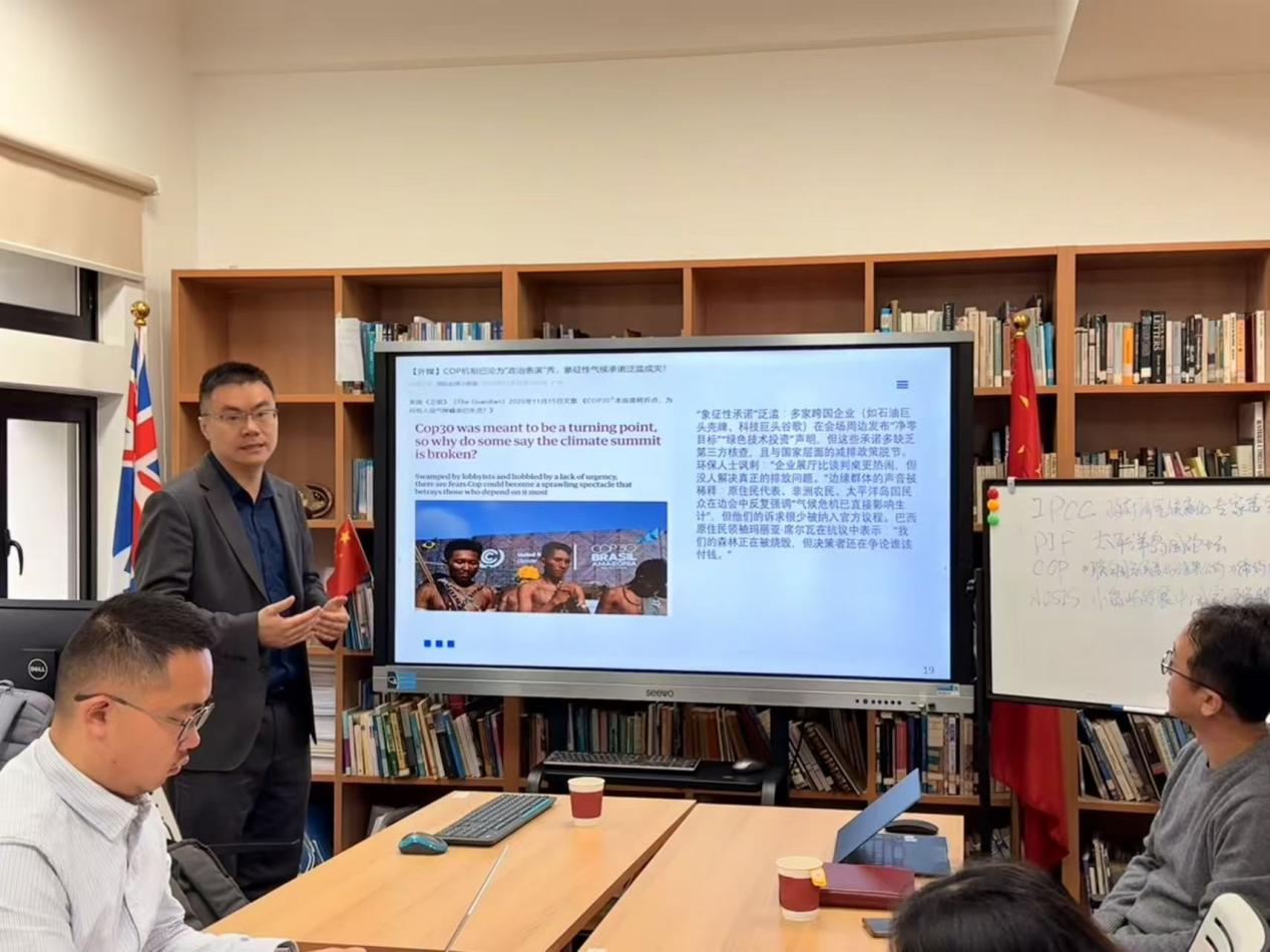 最后,邓云成老师与现场师生就中国在南南合作中的身份立场、气候融资责任分配问题、承诺核查机制缺失问题等问题展开了互动讨论。邓云成还应邀就英文期刊发表流程等做了简要介绍,现场气氛热烈。