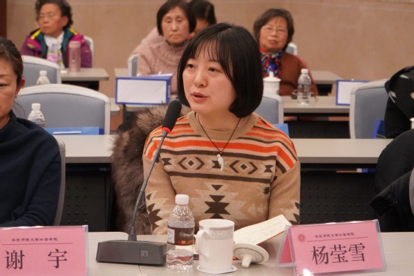 虞苏美先生的同学与好友李慧琴、吴稚倩、陈美芳纷纷回忆了与虞先生共事的岁月,追忆了记忆中先生为人、为师、为学的点点滴滴。与虞先生一起编写《大学英语·听说教程》的李慧琴教授,回忆起与自己相知60年的“闺蜜”与搭档,几度哽咽,泣不成声。吴稚倩教授朗读了她与虞先生共同的精读老师熊家韫所书写的“忆苏美”一文,并追忆了虞先生的治学精神。在虞先生的同学与好友的心目中,虞先生是德才兼备的“女神”,在学识上才高咏絮,汉语英语造诣皆高,唐诗宋词脱口而出,琴棋书画样样精通;在治学上精益求精、极致严谨,“她修改教材从来不留情面,甚至改到只剩下原文的两个字”;在为人处事上又高风亮节,恢廓大度,不图名利,低调谦逊,“我和苏美那么亲,却是在报上看到新闻才知道,她翻译了《三国演义》”;但对于老师、对于学生、对于亲人,甚至陌生人,虞苏美先生都会体恤关怀,出手相助,“当我们得知苏美不幸离去,同学们纷纷在群里面回忆苏美对于自己的帮助,这么多人都视苏美为自己的好友,都受到过苏美的帮助,实在令人惊讶!令人感动!令人敬佩!”