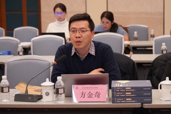 华东师大ob体育 英语系、翻译系主任陈弘教授在主持会议时,首先介绍了虞苏美先生的生平,分享了虞先生女儿发来的英文诗,回忆了自己与虞先生共事的经历,介绍了先生《三国演义》全译本的工作,称赞其匠心独具、高屋建瓴的笔势将这部“跨时代、跨民族、跨国度”的鸿篇巨著生动地重现给了广大读者,为促进汉译外事业和中国文化大踏步“走出去”的发展做出了贡献。以“今天,我们既要追思,也要传承”,拉开了座谈会的序幕。