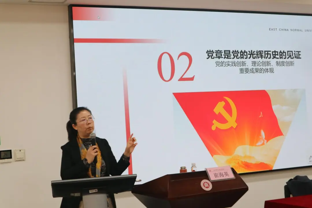 马克思主义ob体育 党委副书记崔海英教授以《学党章、听党话、跟党走——争做新时代好青年》为题作专题报告。崔教授从党章作为立党治党管党总章程的根本地位、党的光辉历史见证、二十大党章新内容、青年使命担当四个维度系统解读,阐明党章与时俱进的鲜明特质与根本大法作用。她以历史脉络梳理党章演进,引导学员深刻理解党的性质宗旨,勉励青年学子深入研读党章、传承红色基因,切实增强“四个意识”、坚定“四个自信”、做到“两个维护”,在新时代自觉践行初心使命,勇担时代责任。
