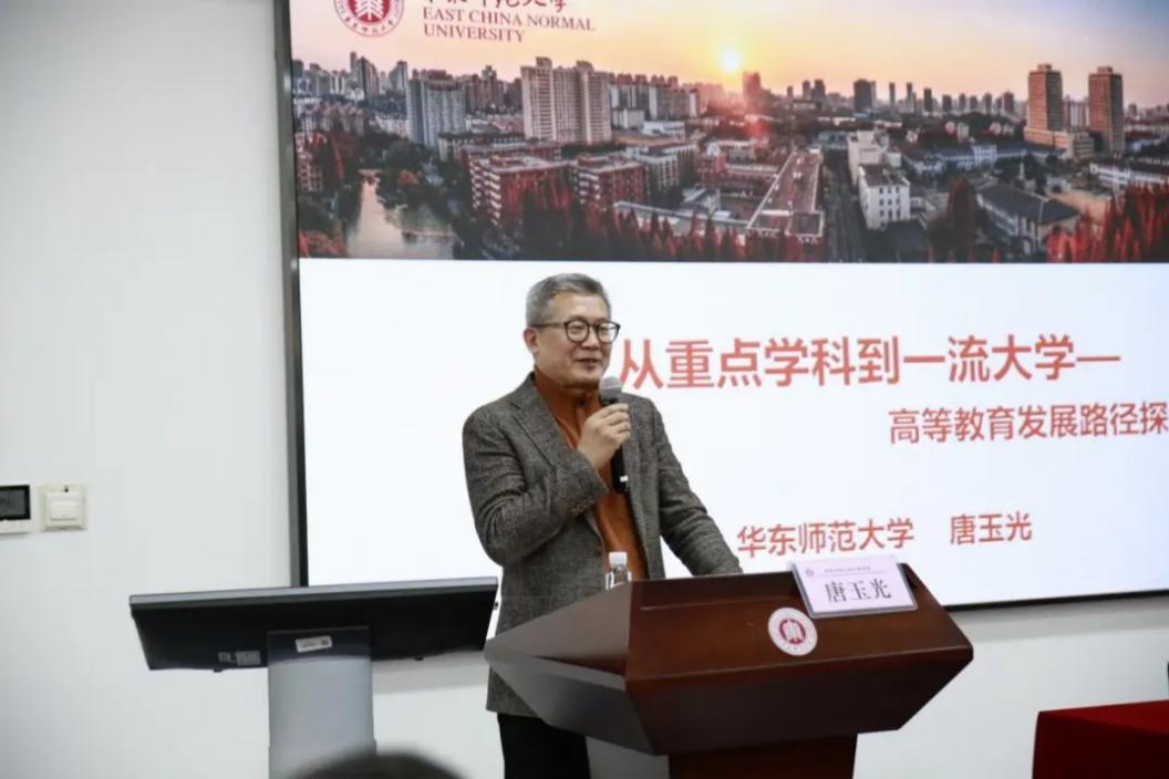 校学术委员会秘书长、高等教育研究专家唐玉光教授作题为《从重点学科到一流大学——高等教育发展路径探索》的专题报告。他从学科与专业的概念辨析入手,系统阐释了学科交叉在现代人才培养中的核心作用,并通过梳理从重点学科到“双一流”建设的政策演进,剖析了学科建设对国家教育强国战略的支撑意义。结合华东师大“三个卓越”工程实践,唐教授展示了学校在通识教育、学科交叉等方面的创新探索,勉励师生主动融入国家战略,勇担时代使命,为构建中国特色世界水平的高等教育体系贡献智慧力量。