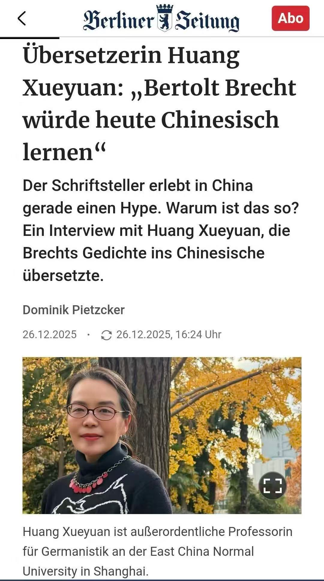 德国诗人布莱希特在中国正掀起一股热潮。原因何在?本文专访了布莱希特诗歌的中文译者黄雪媛女士。