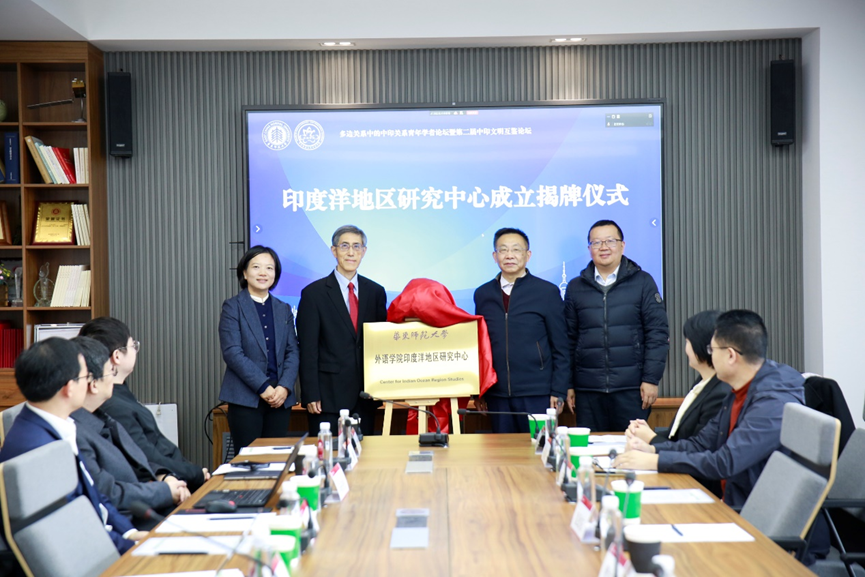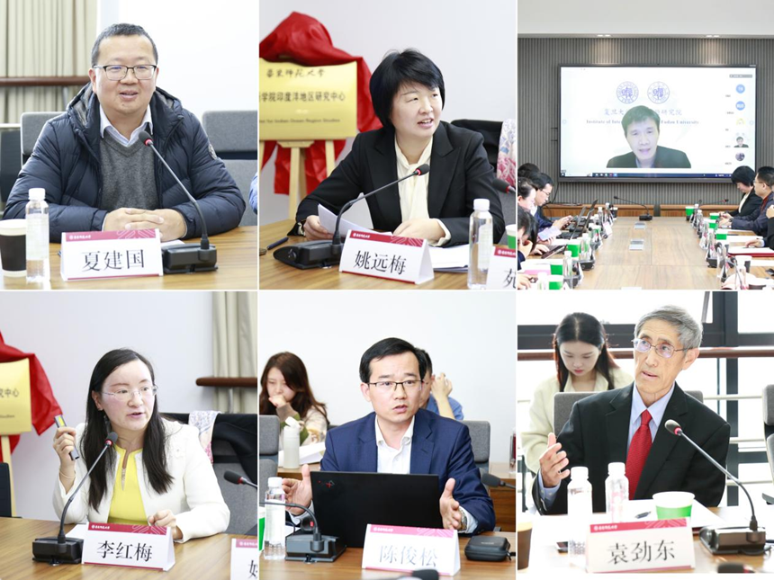 曹友谊、袁劲东和华东师大区域国别研究院执行院长夏建国、ob体育 党委书记韩春红共同为“印度洋地区研究中心”揭牌。开幕式由韩春红主持。