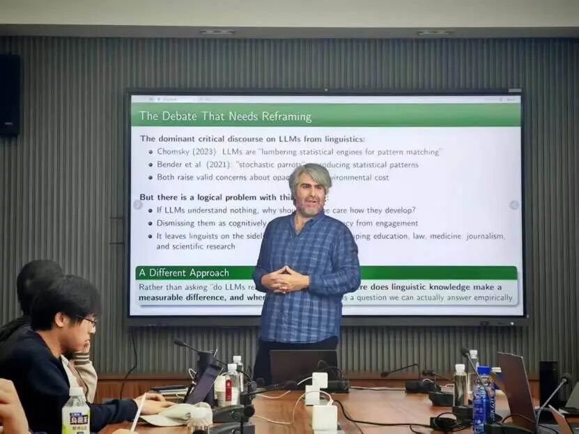 讲座围绕当前计算语言学与理论语言学之间的关系展开。Chatzikyriakidis教授指出,随着大型语言模型的迅速发展,语言处理技术已取得显著进展,但其运行机制缺乏可解释性,难以揭示人类语言认知的内在过程;与此同时,理论语言学虽在形式化分析方面不断深化,却长期缺乏计算实现与大规模验证,两者呈现出一定程度的脱节。他强调,若将语言视为一种认知现象,则当前技术进展仍有诸多核心问题有待回答,而理论语言学在解释深度、认知合理性及跨语言概括能力方面具有不可替代的价值。