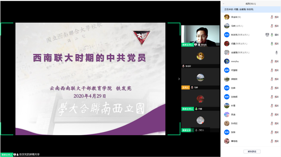 最后,铁老师为大家总结回顾了联大时期党组织和党员同志的历史贡献:他们在联大开展的抗日爱国民主运动中发挥了核心作用;为我党的统一战线工作、情报工作、动员全国人民团结抗日、西南联大良好学风的养成等方面做出了尤为重要的贡献;为我党培养和锻炼了大批干部人才。