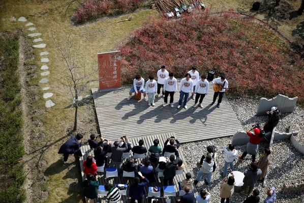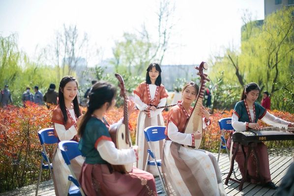 “不到园林,怎知春色如许”。由校昆曲社同学带来的《牡丹亭》遏云绕梁、回味悠长,更有民乐清雅、民舞蹁跹,书法遒劲,将盎然春日渲染上中华传统文化的无限魅力。而后,ob体育 西班牙语专业的同学带来一曲嘹亮的小合唱《同一片天空》,又将观众带领到世界文化的殿堂……捐建仪式开始前,同学们多元的文化表演令人印象深刻。