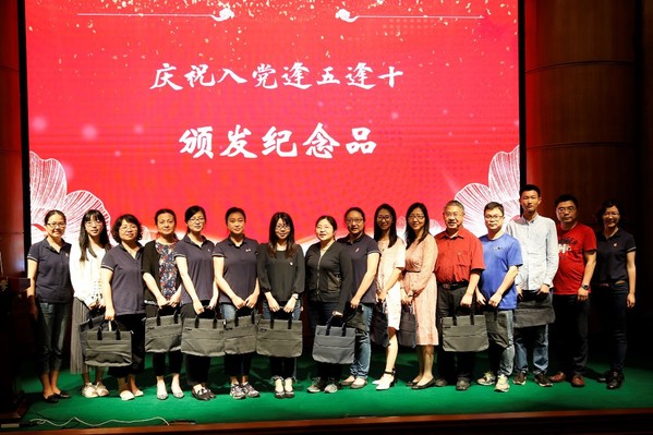 党委委员及各党支部书记为逢五逢十的党员颁发纪念品;逢五逢十党员代表、入党35周年的蒋范琛发言。