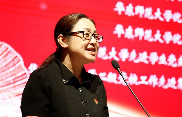 来自大学英语部教工党支部汪燕和行政党支部王丹丹合作朗诵了《青春》,呼吁在场党员以梦为马,不负韶华。