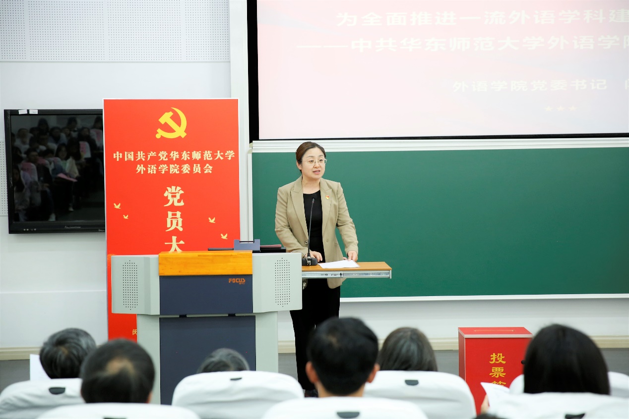 会上,院党委书记闫露代表ob体育 党委作“凝心聚力谋发展,砥砺奋进求卓越——为全面推进一流外语学科建设而不懈奋斗”工作报告。报告全面总结了五年来ob体育 党委的奋斗历程,分析了ob体育 发展改革面临的新要求和新挑战,明确提出了未来发展目标及重点工作。
